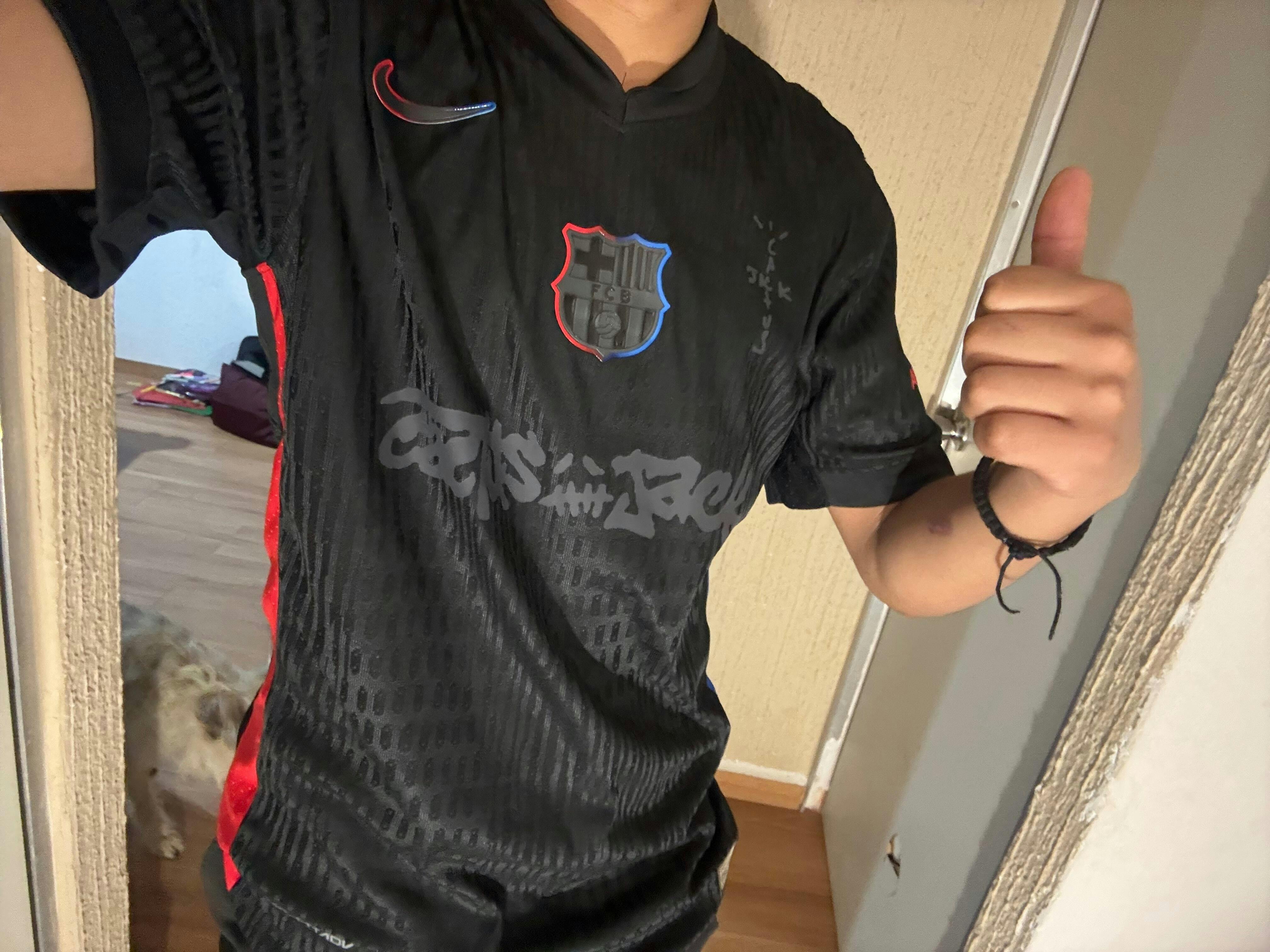 Vístete de misterio y elegancia: este jersey visitante 2024/25 luce un negro profundo con finas franjas laterales rojo y azul para mantener el espíritu blaugrana 🌑🔵🔴.